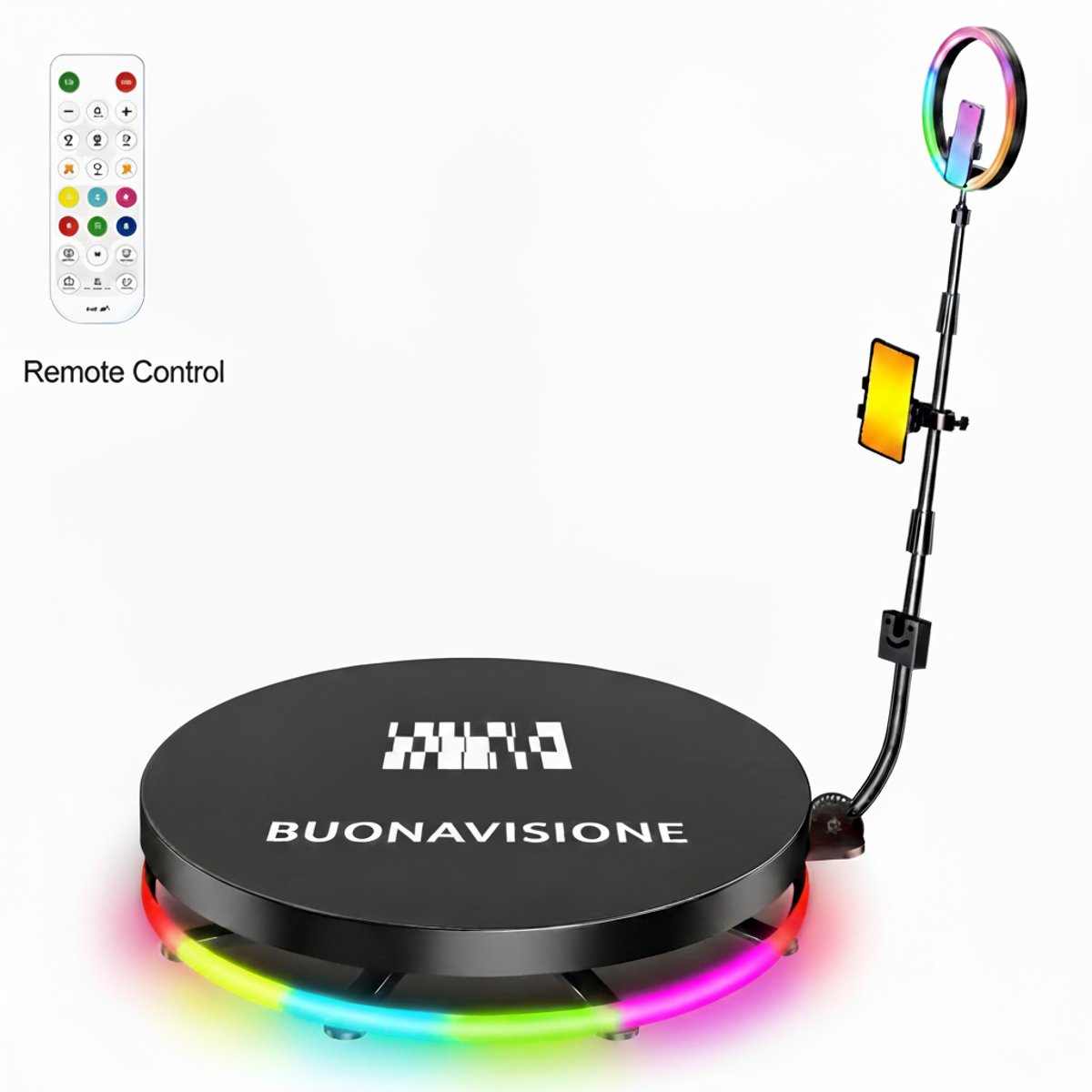 - Wireless Control: The booth's rotation speed and direction can be controlled wirelessly via a mobile app or a remote control. It also includes RGB lights with a remote to enhance the atmosphere.