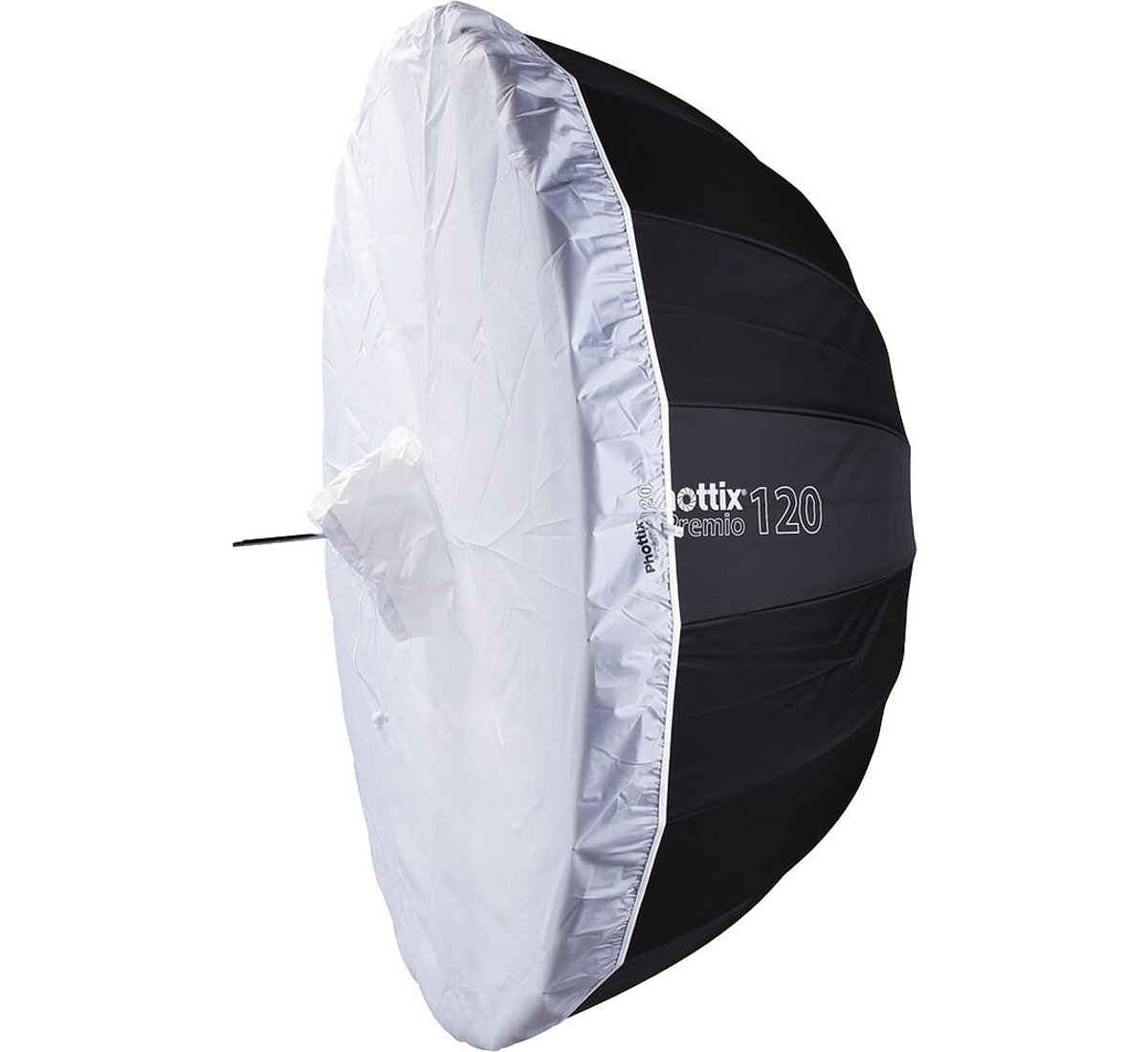 This 47" Premio Reflective Umbrella from Phottix is an easily deployable and widely compatible modifier that helps you diffuse and control the light emitted from a variety of sources both in studio and on location. The white interior can be used to bounce the light from your monolights, strobes, and more to create a large, soft source of light with a variety of applications. The included diffuser adds a further level of control over the softness of your light's output.