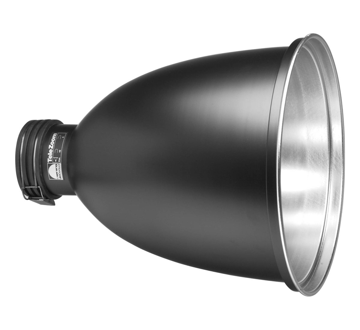This 20-30° Profoto Telezoom Reflector is similar in lighting quality to the standard zoom reflector, but it has a narrower beam spread and allows a further throw of the light output from a Profoto flash head.