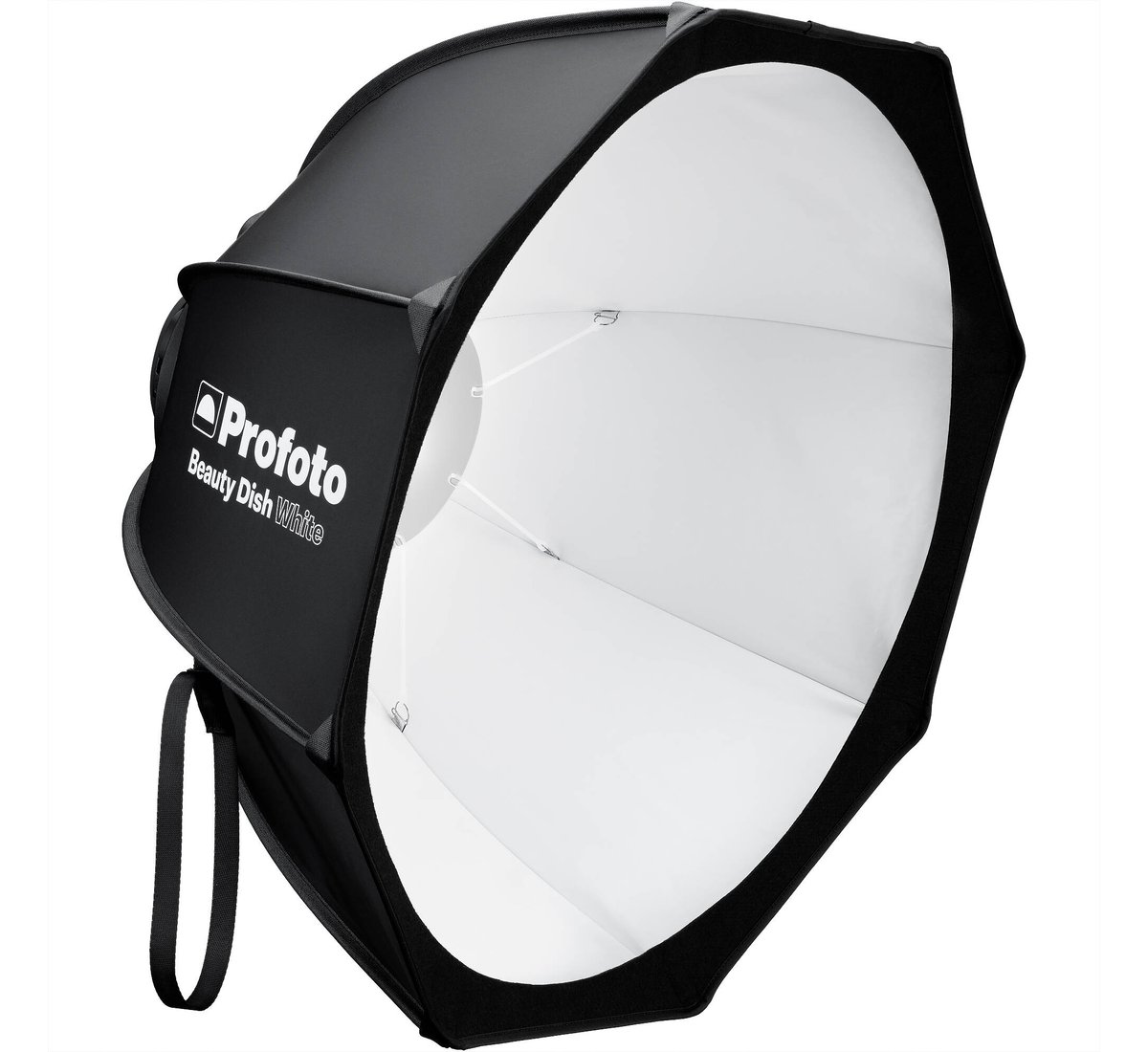 Achieve soft, yet dynamic hassle-free lighting free with the white, 24" Beauty Dish from Profoto. Designed to cast soft, even light while preserving contrast, this beauty dish emulates natural light with a simple-to-assemble construction for captivating portraits. Enthusiasts of Profoto's legacy Softlight Reflector will appreciate the beauty dish's natural and soft finishes for portraiture. The circular front mask construction captures natural catchlights to create stunning portrait lighting with more depth. Thanks to its integrated speed ring and quick-collapse design, assembly and transportation are easy. The dish is ideal for photographers on location and this beauty dish is only for use with flat-front Profoto lights.