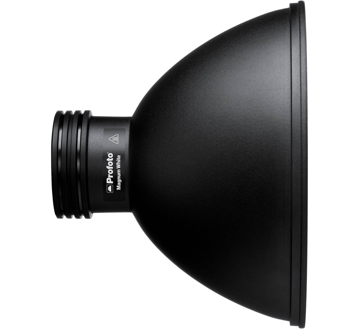 Profoto continues to expand its versatile hard reflector line with the white Magnum Reflector. Opposed to silver reflectors, the white-coated Magnum produces a softer, broader light spread when mounted to a 100mm-mount Profoto light head. It increases light output by one f-stop, giving you a more balanced light. Quickly adjust the beam angle of your Profoto head by moving the reflector back and forth along the body of the light.