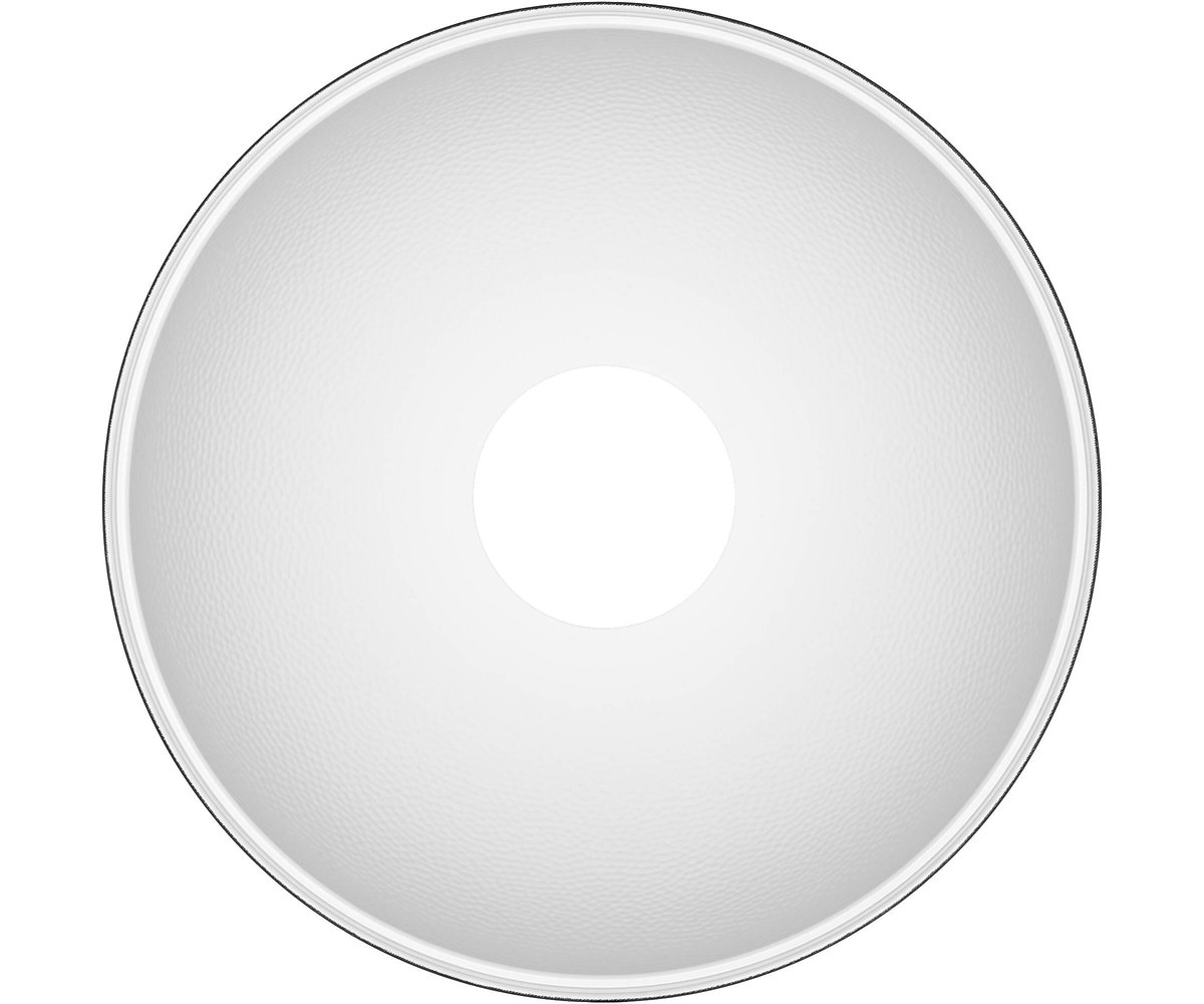 The reflector's white-coated interior delivers a wide, evenly balanced light spread, while maintaining contrast and texture without being too harsh. It offers the perfect mix of crispness and softness, enhancing brightness more than a bare light.