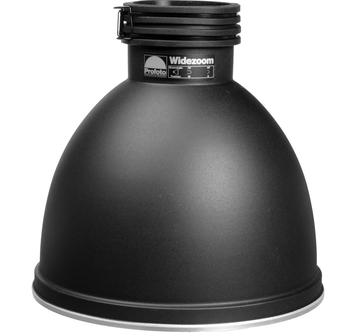The ProfotoWideZoom Reflector is a focusable reflector for very even illumination from 70 - 40°, with slightly modulated shadows. An optional 10° grid is available to narrow the beam spread.