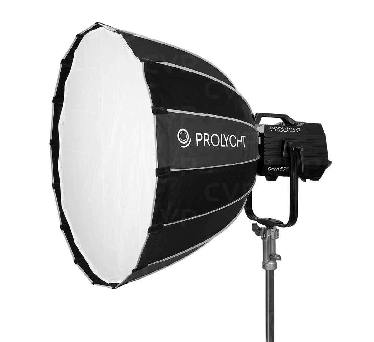 Soften the output of your Orion 675 FS light fixture, creating a luscious beauty light with this Soft Dome for Orion 675 FS LED from Prolycht. The 60" diameter of the dome bathes your subject in even illumination and creates large circular catchlights in their eyes. The depth of the Soft Dome provides directional control with sharp falloff.