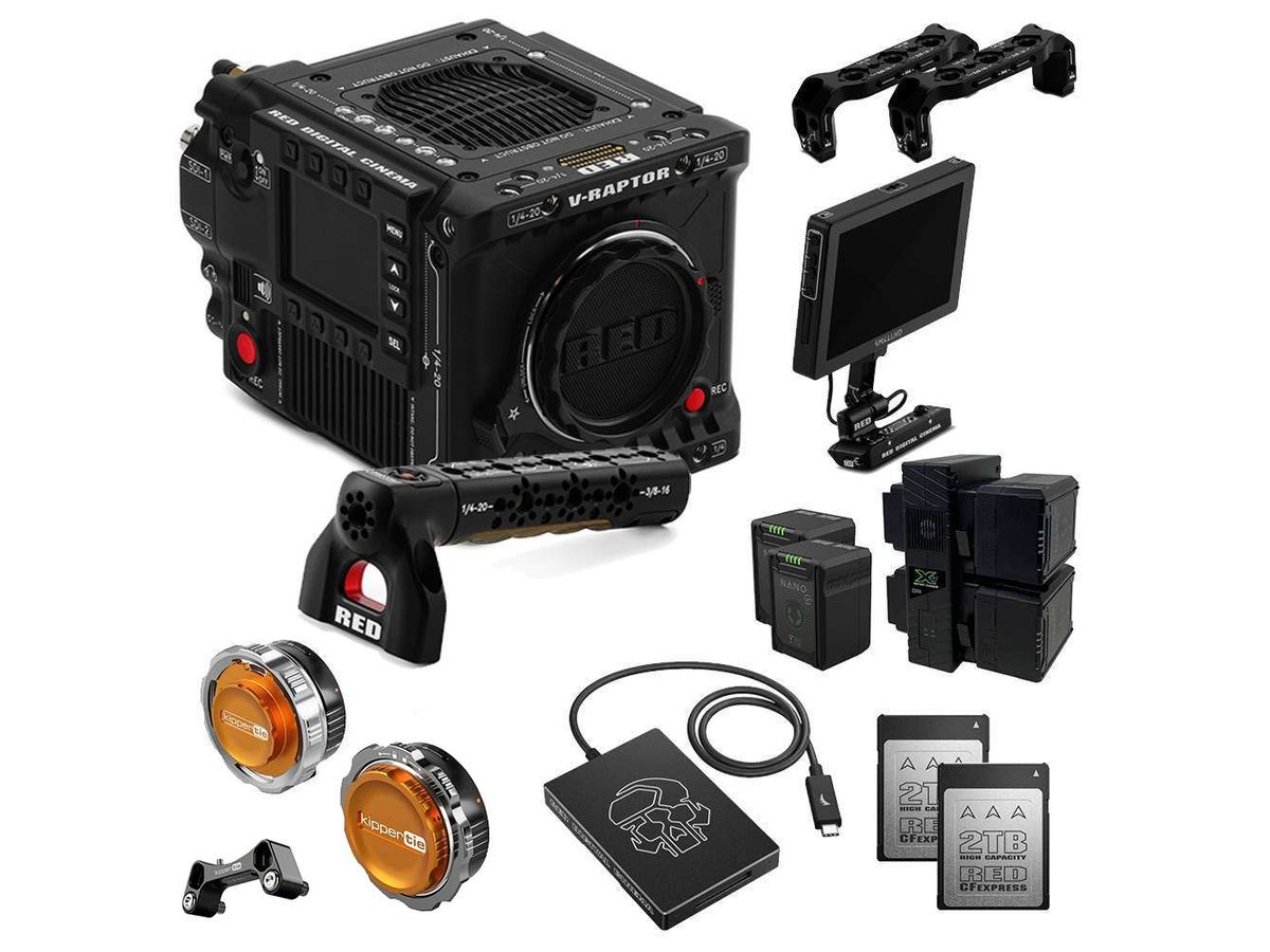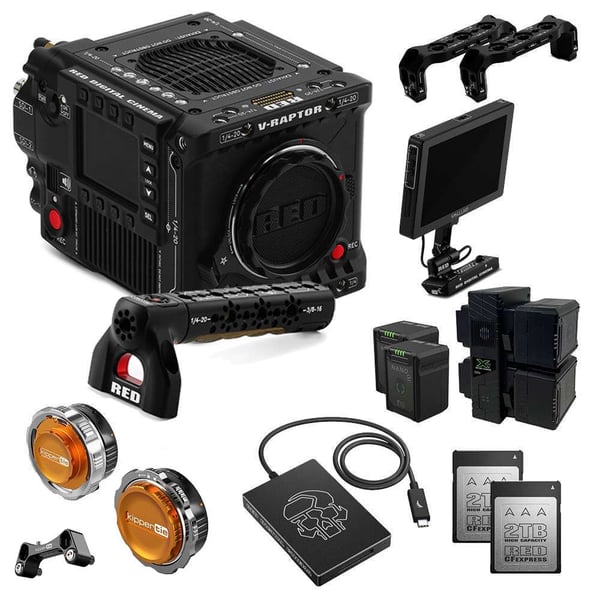 Compact, fast, and full-frame—the black V-RAPTOR 8K VV Camera is an impressive introduction to RED DIGITAL CINEMA's new DSMC3 platform. Sized only slightly larger than the KOMODO but boasting a new sensor, the V-RAPTOR offers multi-format capture in 8K VV, 6K Super35, 4K, 3K Super16, and anamorphic options. This versatility enables you to adapt your format from project to project to suit your choice of a variety of pro cine or still photo lenses. The V-RAPTOR's RF lens mount can be used with numerous lens adapters, and it has a locking ring that provides additional security for use with heavier lenses and steady, wide-open capture. In response to user feedback, RED has added a right-side user interface that brings control to 1st and 2nd ACs right at the camera. Dual 12G-SDI outputs, resolutions including 16-bit REDCODE Raw at significantly higher frame rates, 1080 streaming, 17+ stops of dynamic range, and phase-detection autofocus (PDAF) further boost the V-RAPTOR's suitability for a range of production styles.