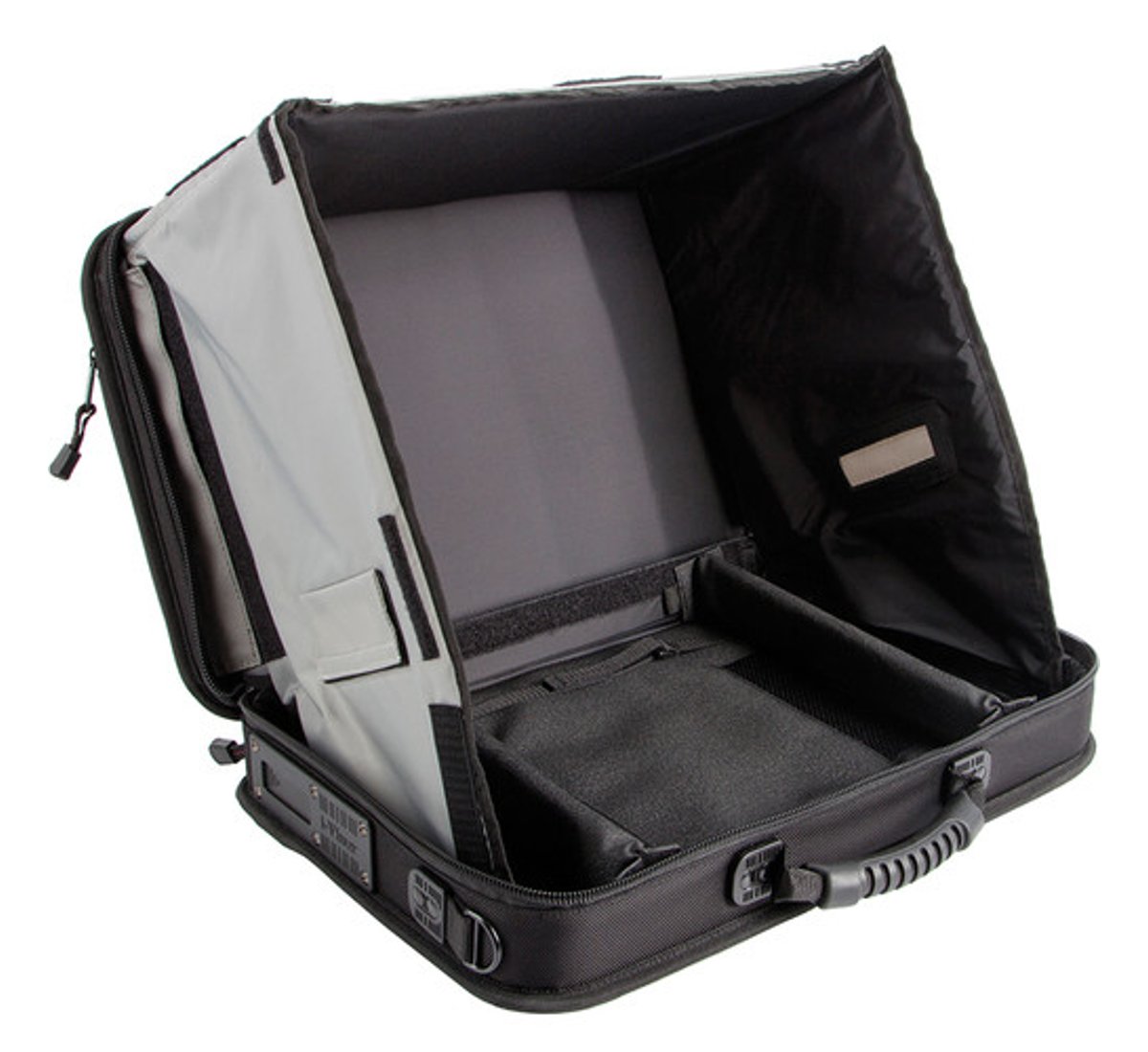 View your laptop screen in virtually any lighting environment with the i-Visor LS Pro MAG from Seaport Digital. This case is comprised of rugged ballistic weaved nylon for increased durability and features a matte silver exterior to help reduce heat buildup. With support for laptops of up to 17", this case gives you everything you need to fully utilize all aspects of your laptop with side access ports allowing you to plug in cables and peripheral devices. Additionally, the internal laptop safety strap keeps the laptop secure while the passive cooling system helps to prevent your system from overheating.