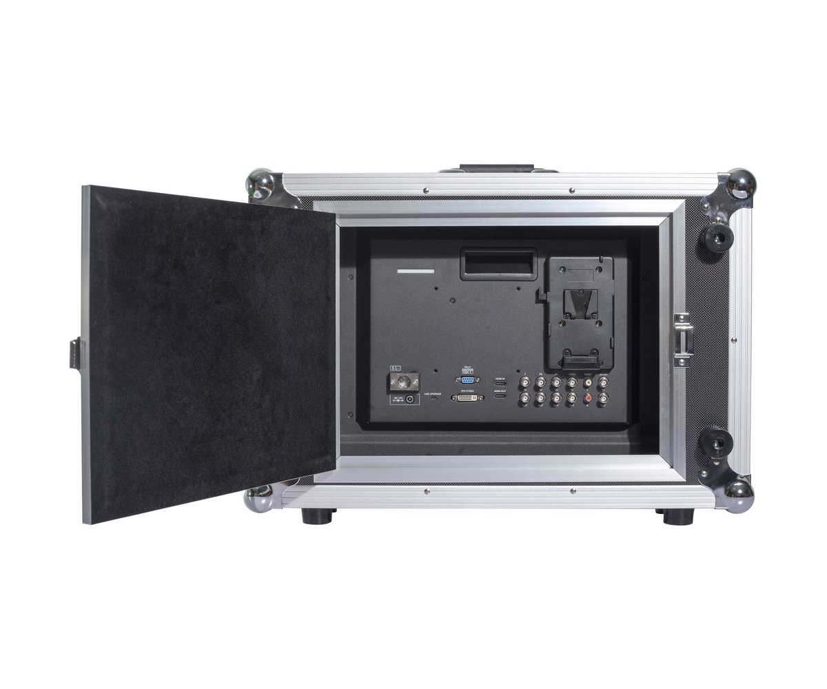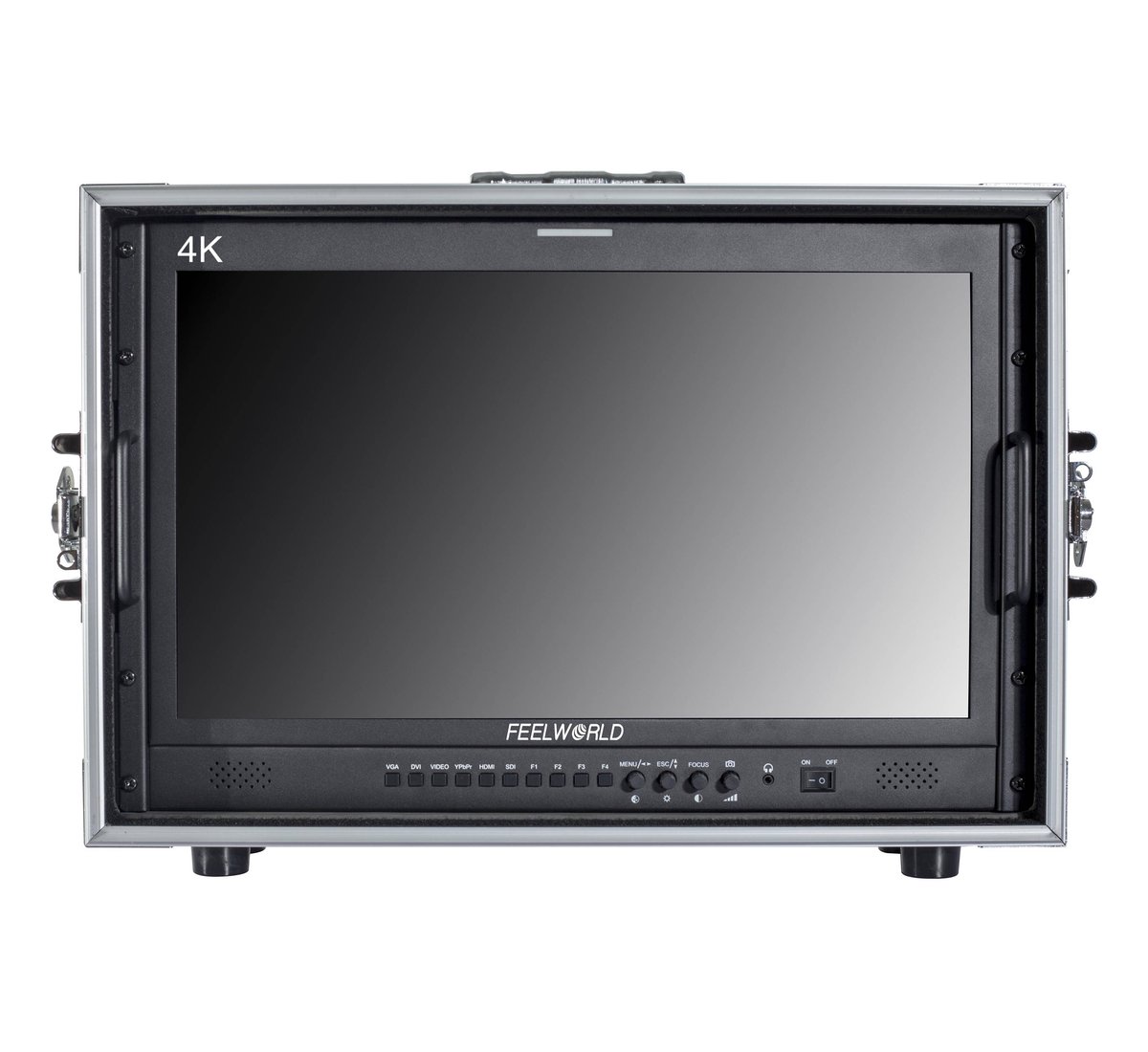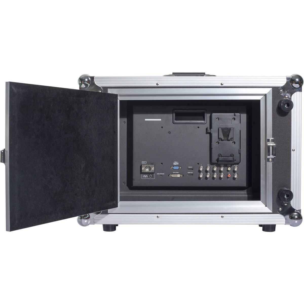 The 21.5" Full HD IPS Carry-On Broadcast Monitor from FeelWorld features a 1920 x 1080 display and supports up to 1080p60 signals. It comes screwed into a metal silver case designed to allow for efficient use while ensuring optimal heat dissipation and all-around protection. You can set it on the ground, lean it against something, set it down flat on a desktop or similar surface, and carry it from place to place using the top handle. The lid comes off completely when you unlock it at multiple locking points to provide a full view of the screen. Alternatively, the monitor can be unscrewed from the case and installed into a rack via the built-in handles and built-in rack ears.