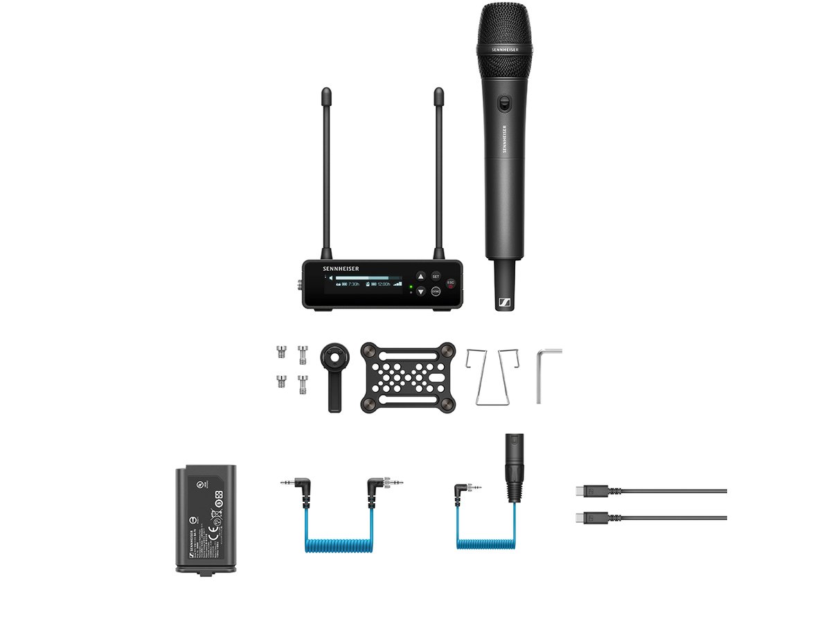 Purpose-built for video content creators, presenters, and newsgatherers looking for a stress-free wireless experience, the Sennheiser EW-DP 835 SET with Handheld Mic is a camera-mount, fully digital wireless microphone system that utilizes professional UHF transmission to reliably deliver Sennheiser's pristine, broadcast-quality audio directly to your camera. This configuration includes an EW-DP EK camera-mount, single-channel receiver with mounting kit, a lightweight EW-D SKM-S handheld transmitter with mute switch and MMD 835 dynamic cardioid mic capsule, plus 3.5mm and XLR output cables to connect the receiver to a DSLR/mirrorless camera or to a recorder or mixer.