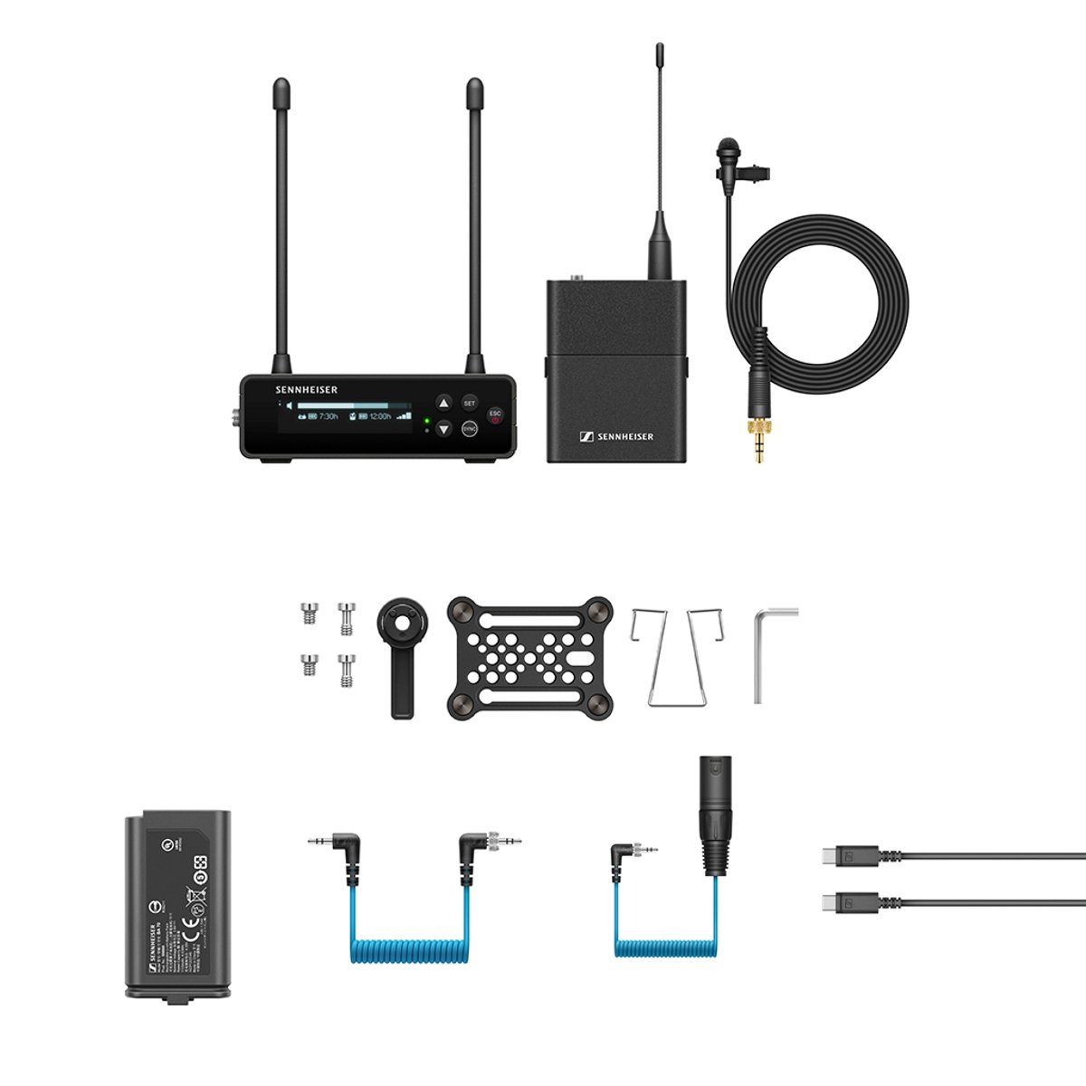 Purpose-built for content creators, videographers, and newsgatherers looking for a stress-free wireless experience, the Sennheiser EW-DP ME 2 SET with ME 2 Omnidirectional Lavalier is a camera-mount, fully digital wireless microphone system that utilizes professional UHF transmission to reliably deliver Sennheiser's pristine, broadcast-quality audio directly to your camera. This configuration includes an EW-DP EK camera-mount, single-channel receiver with mounting kit, a lightweight EW-D SK bodypack transmitter with unobtrusive ME 2 omnidirectional lavalier mic, plus 3.5mm and XLR output cables to connect the receiver to a DSLR/mirrorless camera or to a recorder or mixer.