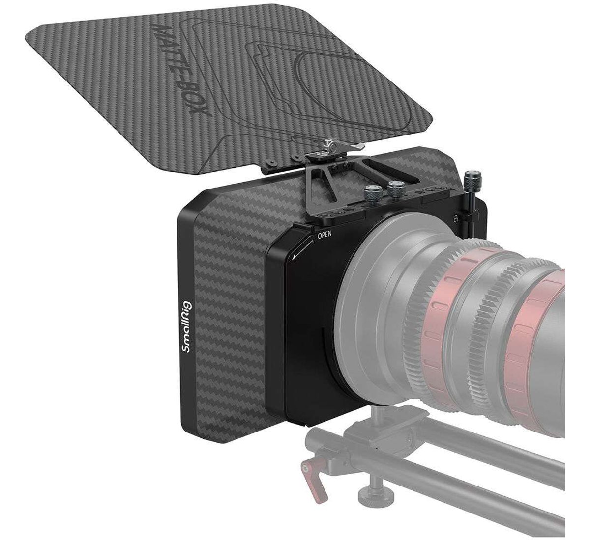 Add a compact matte box to your rig without much-added weight with the Lightweight Carbon Fiber Matte Box from SmallRig. The matte box suits small mirrorless or DSLR cameras and is made from durable but lightweight carbon fiber material. It accepts two 4 x 4 or 4 x 5.65" filters without the use of filter trays and includes four adapter rings to attach the matte box to the lens.