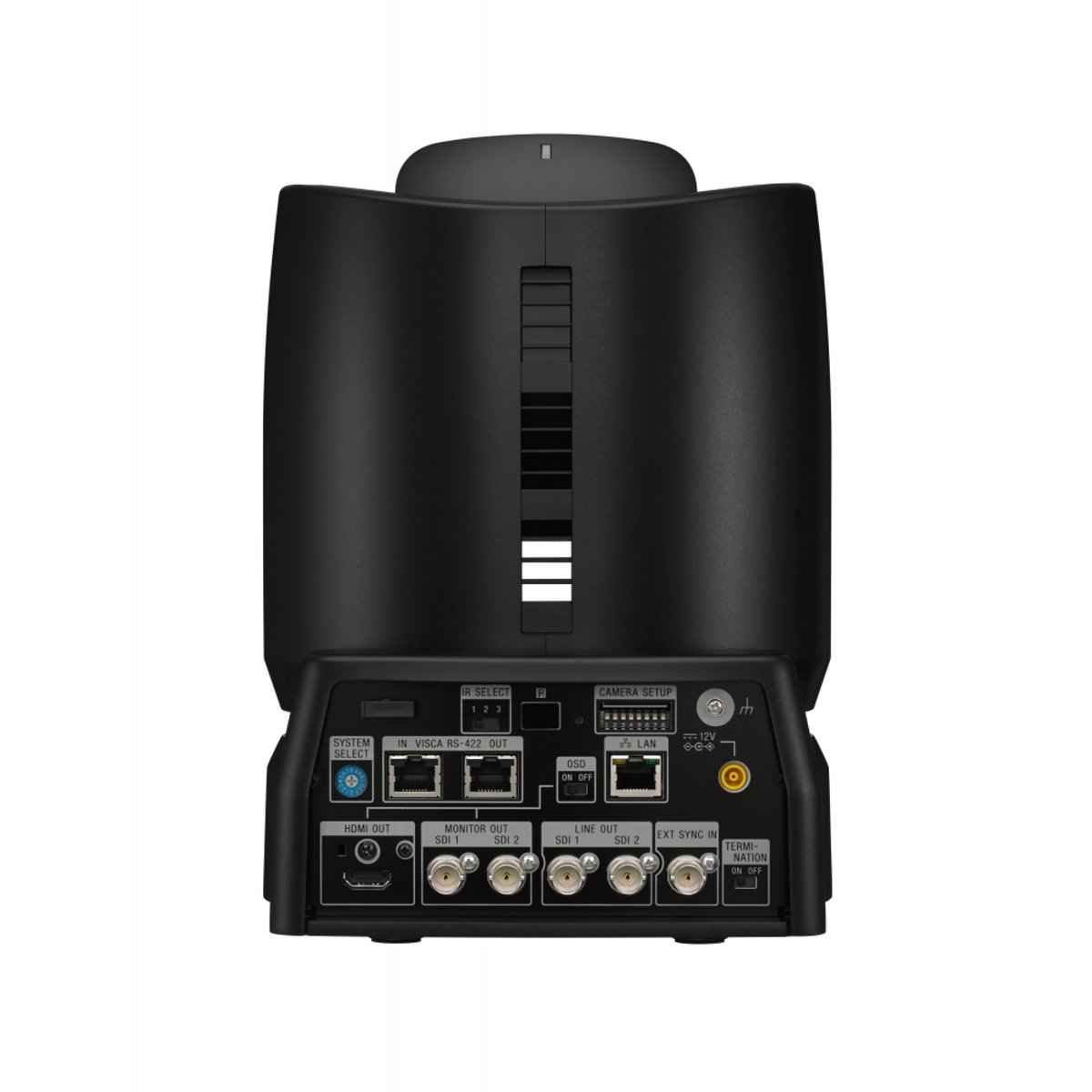 The BRC-X1000 camera features HDMI and dual-link 3G-SDI outputs, and Ethernet and RS-422 control interfaces. Remote control functions include pan, tilt, zoom, focus, iris, shutter speed, and gain. The BRC-X1000 is suitable for use in broadcast studios, remote on-air setups, houses of worship, and live sports applications. The front and rear tally lights are useful for on-air broadcasting and have adjustable brightness levels. Camera function upgrades may be applied by the user via its IP connection. The TAA-compliant Sony BRC-X1000 4K PTZ Camera is ceiling- and desktop-mountable and comes with two brackets, screws, an HDMI cable clamp, and an IR remote commander.