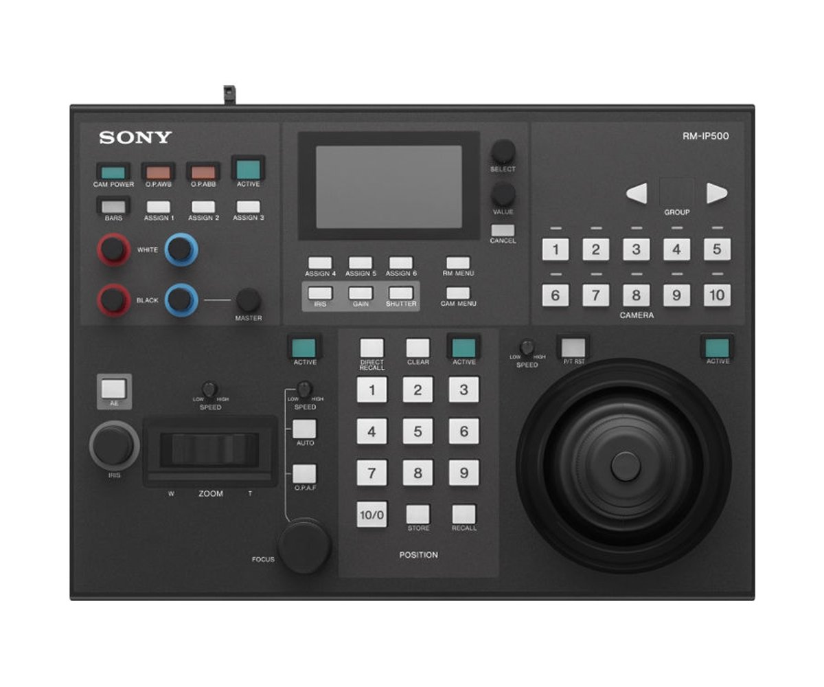 The Sony RM-IP500/1 Professional Remote Controller for Select Sony PTZ Cameras provides control of Sony BRC-X1000/1, BRC-H800/1, BRC-H900 and SRG-360SHE PTZ cameras. This compact unit incorporates a joystick for pan, tilt, and zoom control, and it has the capability of controlling up to 100 separate cameras over IP. In addition to the joystick, the controller features dedicated knobs and control buttons that allow you to bypass the camera's menu systems to access frequently used functions.