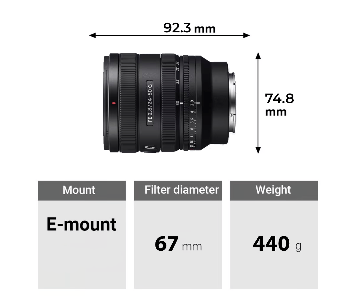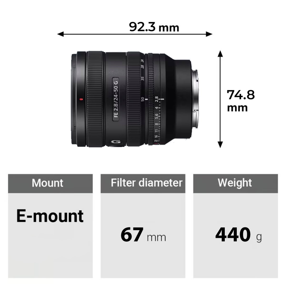 Bringing a bright, wide maximum aperture to an easy-to-carry form factor, the Sony FE 24-50mm f/2.8 G Lens is a versatile mid-range zoom lens built for everyday mobility. The lens's outstanding image quality benefits both stills and video shooters, yielding high resolution and smooth bokeh.