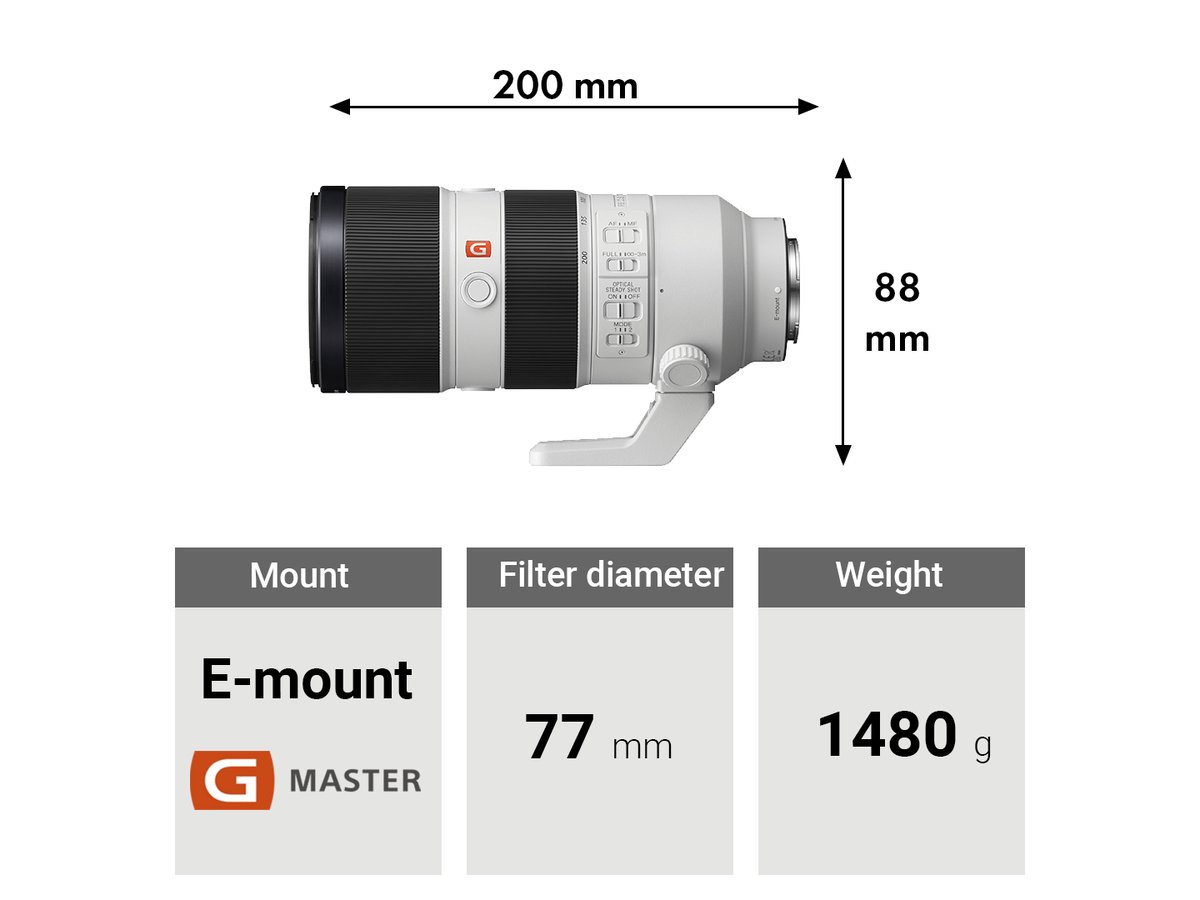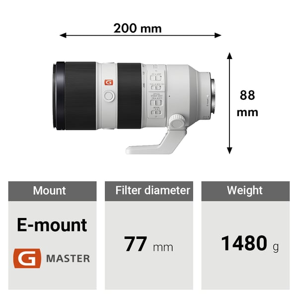 • A popular telephoto zoom designed for full-frame E-mount mirrorless cameras, this 70-200mm lens is also compatible with APS-C models where it provides a 105-300mm equivalent focal length range.