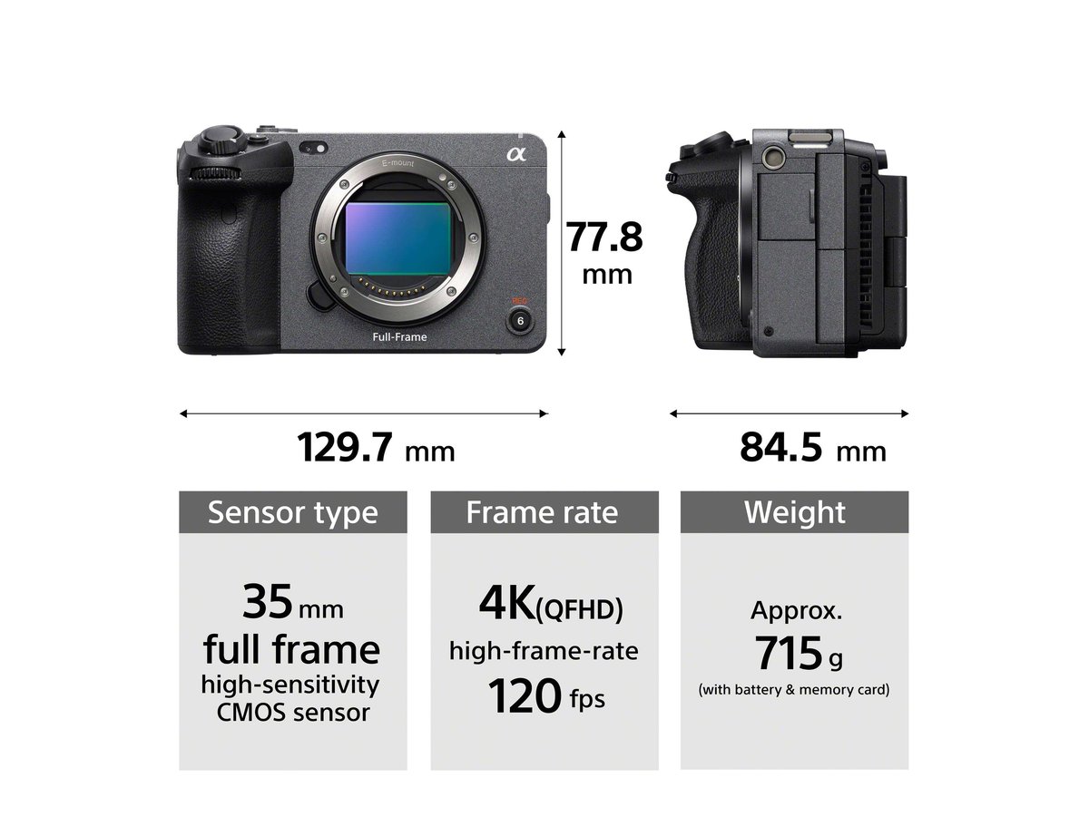 This compact addition to Sony's Cinema Line blends the full-frame, S-Cinetone capture of the FX6 with the UHD 4K capture, autofocus options, and body size of the a7S III camera. The video-forward design of the FX3 also shares several handling and audio features with the FX6 and the ISO range and battery of the a7S III.