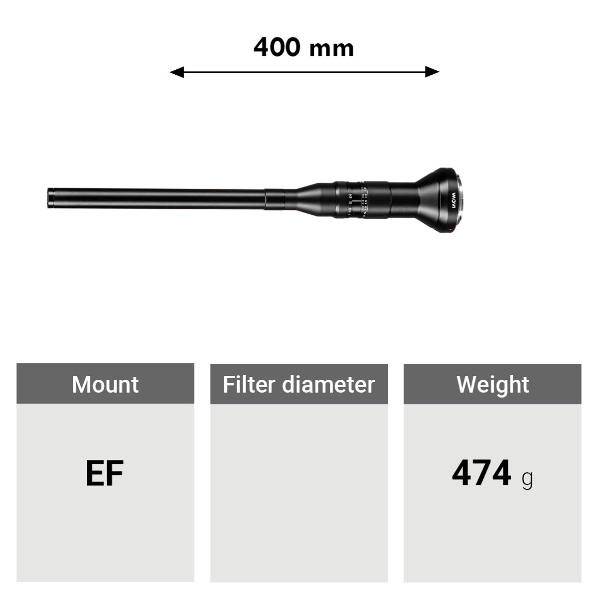 - Il design macro unico permette un ingrandimento maggiore della vita reale 2:1 con distanza minima di messa a fuoco di 46 cm e distanza di lavoro di soli 2 cm. Il corpo tubolare lungo contribuisce a produrre una prospettiva “bug-eye” distintiva e, nonostante la breve distanza di lavoro, mantiene la fotocamera a una distanza confortevole dal soggetto.