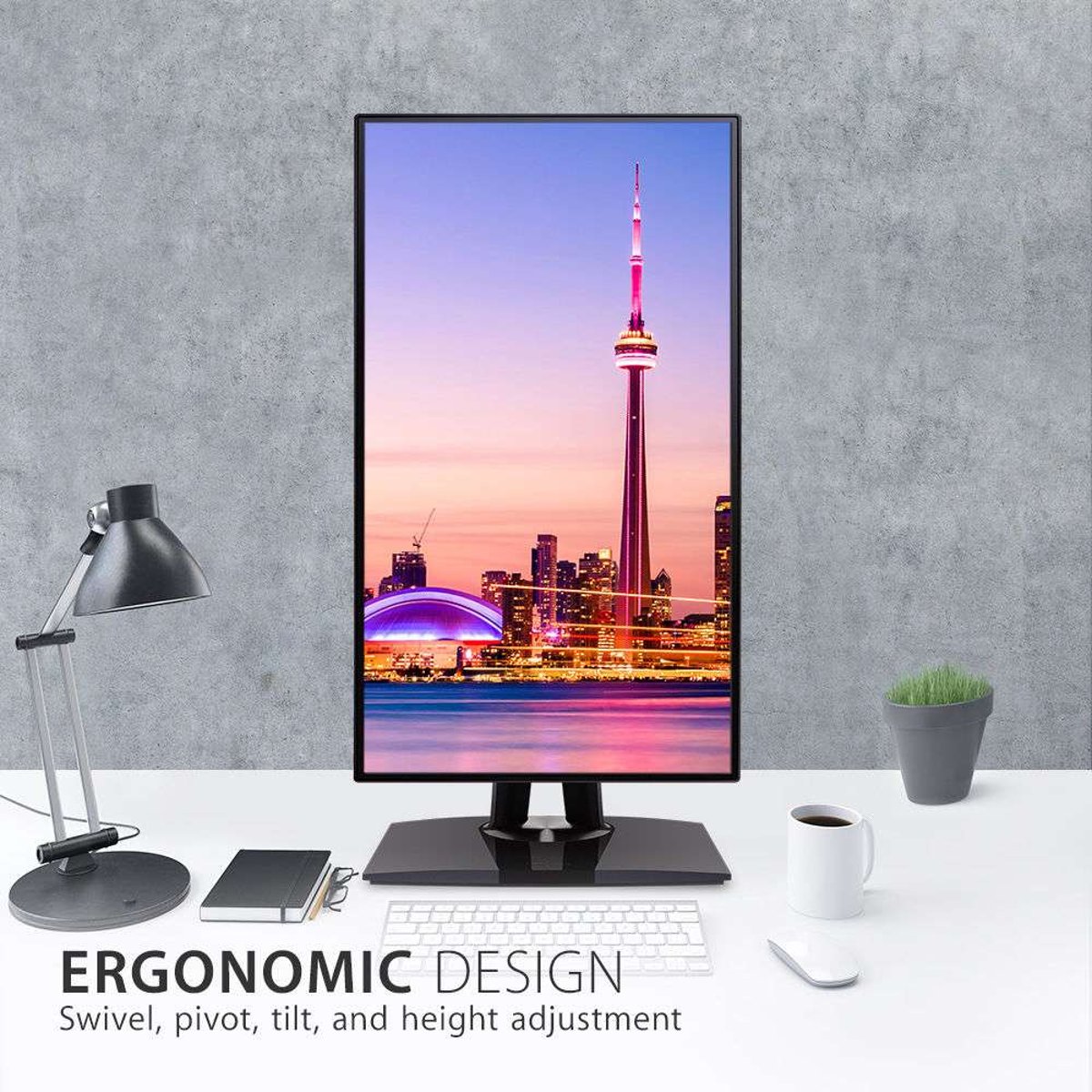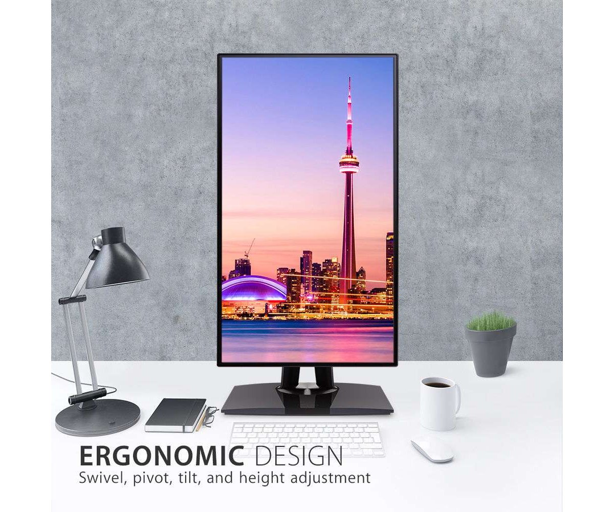 The VP2768 is designed to provide a full range of adjustments for increased productivity and comfort via swivel, pivot, tilt, and height adjustment options. With built-in G sensor, the screen image can auto pivot when positioned vertically.