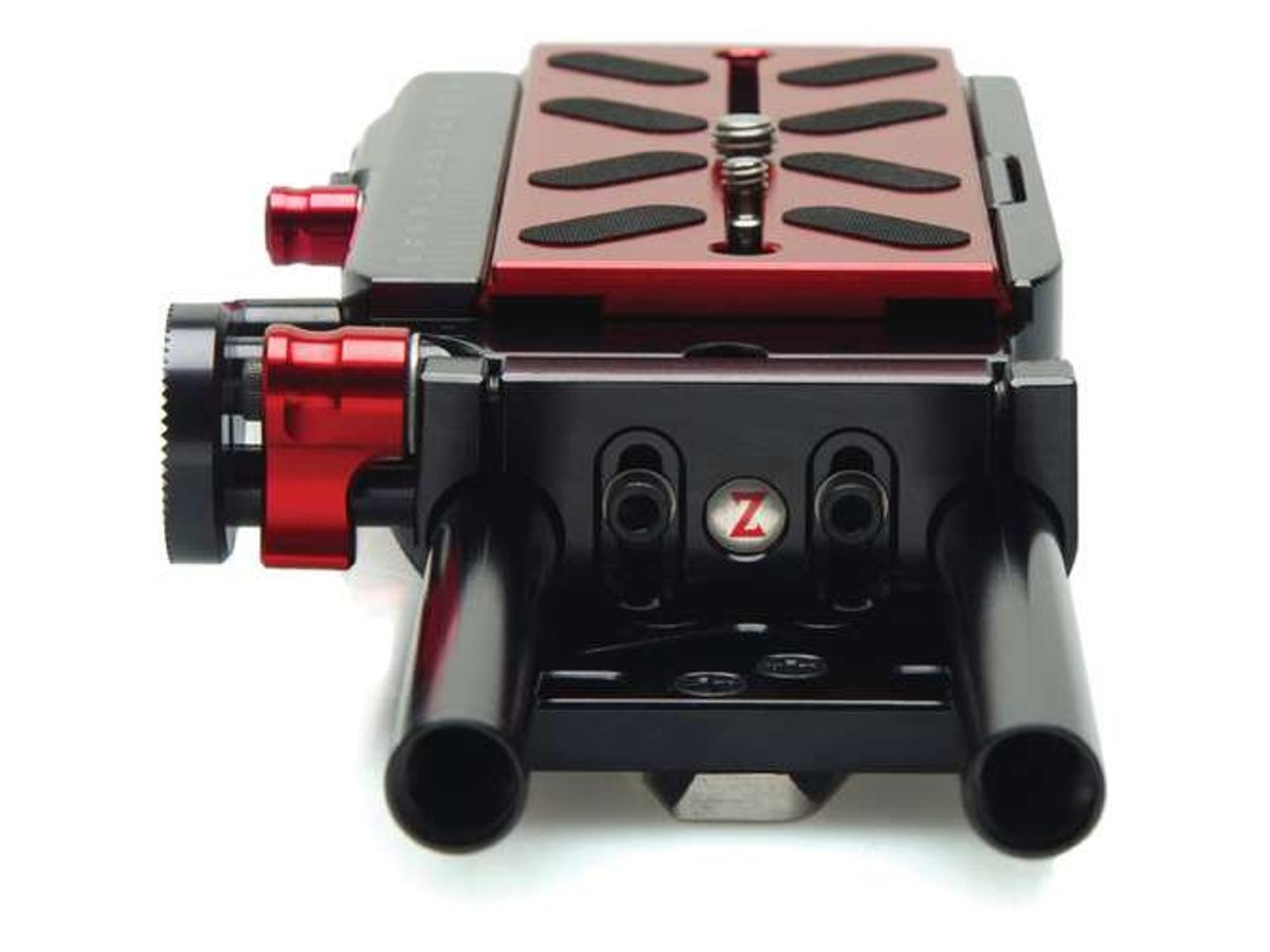 Front rod adapter is vertically adjustable 1"; optional 1.8" riser available from Zacuto for RED cameras