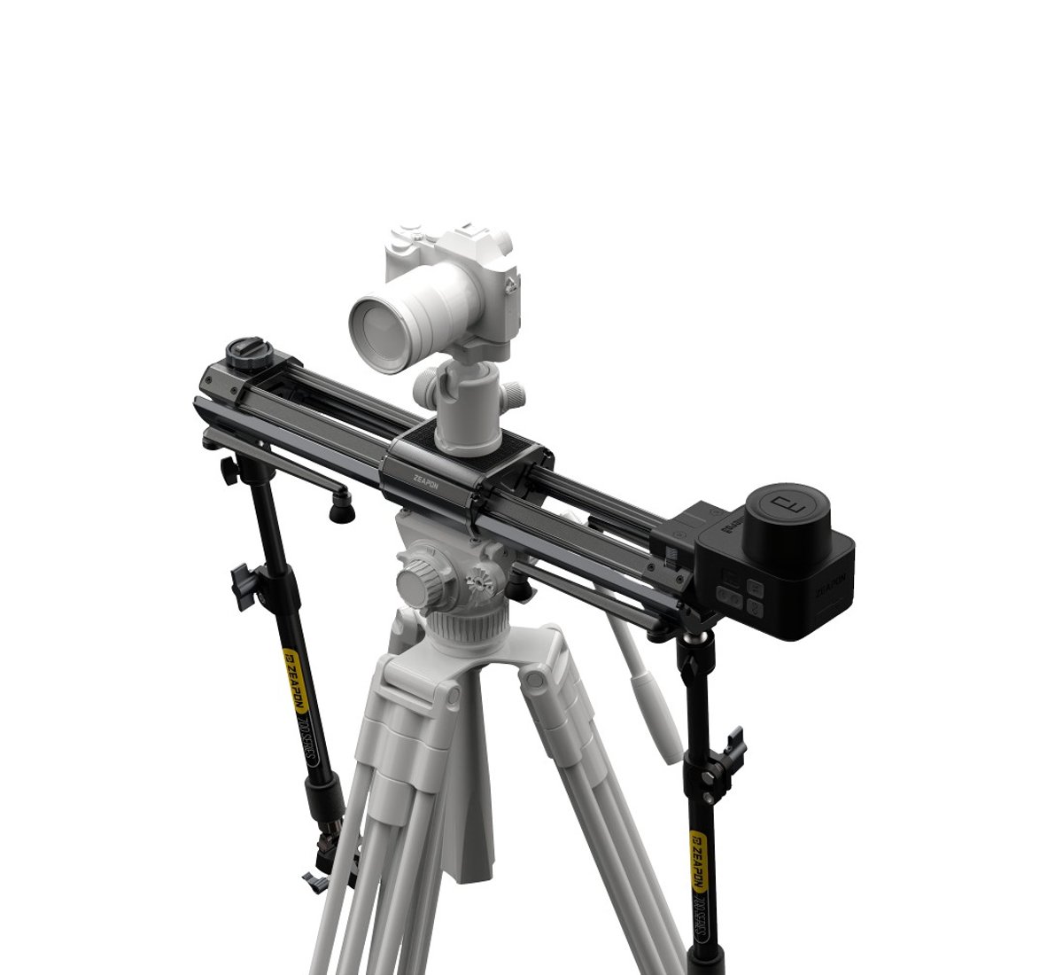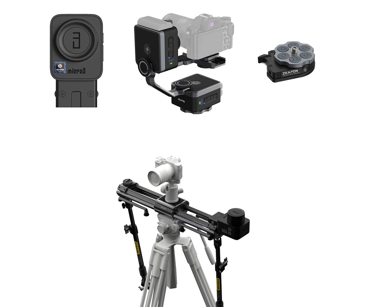 Zeapon Micro3 è una innovativa serie di slider a doppia estensione, che condividono lo stesso motore. Micro3 utilizza un nuovo design dei binari inclinati a 45 gradi che disperdono il peso sia orizzontalmente verticalmente: il carico utile va da 4 a 12 kg. Il design innovativo conserva i comandi tramite pulsanti fisici, per gli utenti che non amano regolare le impostazioni tramite APP.