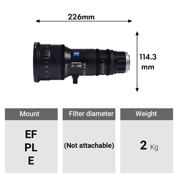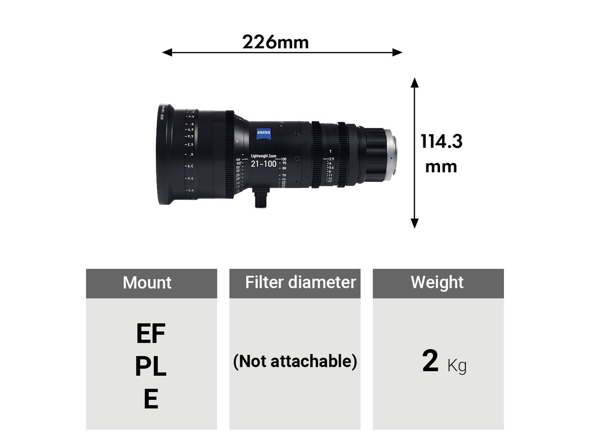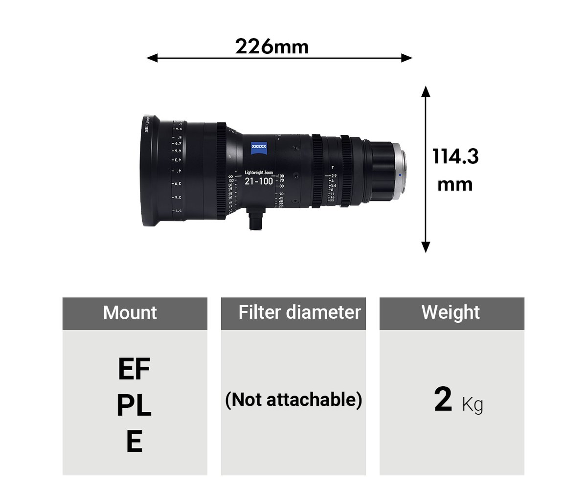 The ZEISS Lightweight Zoom LWZ.3 Lens in interchangeable mount with focus markings in feet features a 21-100mm zoom range, making it a one-size-fits-all alternative for budget-constrained productions. The lens is optimized for digital cinematography whether on a DSLR or cinema camera, and will cover image sensors sizes up to Super 35mm.